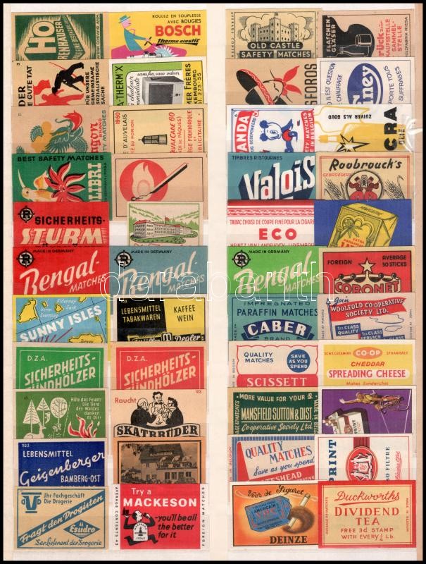 182 db gyufacímke 2 db A4-es kétoldalas berakólapon https://www.darabanth.com/de/409-Fernauktion/409.0/Kunst-Dokumente-andere-Sammelgebiete/Streichholzer-Etikett~500023/182-db-gyufacimke-2-db-A4-es-ketoldalas-berakolapon~II2542543