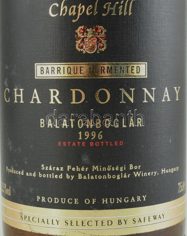 1996 Chapel Hill Balatonboglári Chardonnay Barrique 1996, zavaros, bon... https://www.darabanth.com/de/409-Fernauktion/409.0/Kunst-Dokumente-andere-Sammelgebiete/Vintage-Weine-Getranke~500015/1996-Chapel-Hill-Balatonboglari-Chardonnay-Barrique-1996-zavaros-bontatlan-palack-szaraz-feherb~II2533380