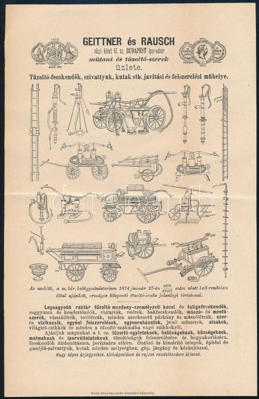 cca 1890 Geittner és Rausch tűzoltószerek illusztrált reklám nyomtatvá... https://www.darabanth.com/de/409-Fernauktion/409.0/Kunst-Dokumente-andere-Sammelgebiete/Werbungen~500022/cca-1890-Geittner-es-Rausch-tuzoltoszerek-illusztralt-reklam-nyomtatvany~II2541612