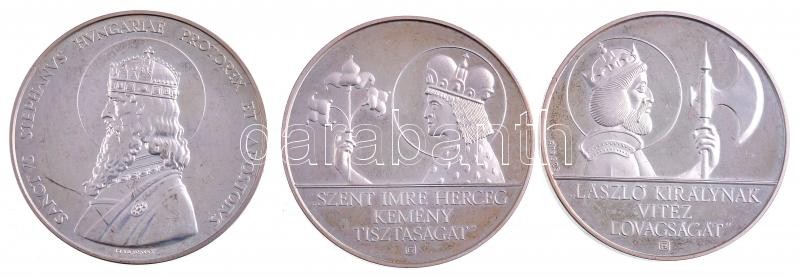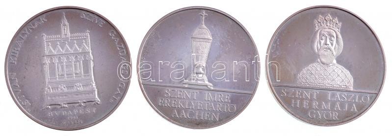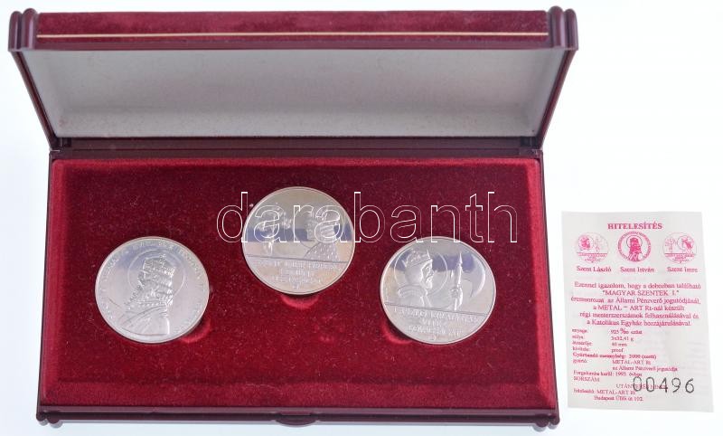 Fülöp Zoltán (1951-) 1994. "Magyar Szentek I - Szent László, Szent István, Szent Imre" 3db-os jelzett Ag emlékérem szett dísztokban, sorszámozott tanúsítvánnyal (3x32,4g/0.925/40mm) T:1- (eredetileg PP)