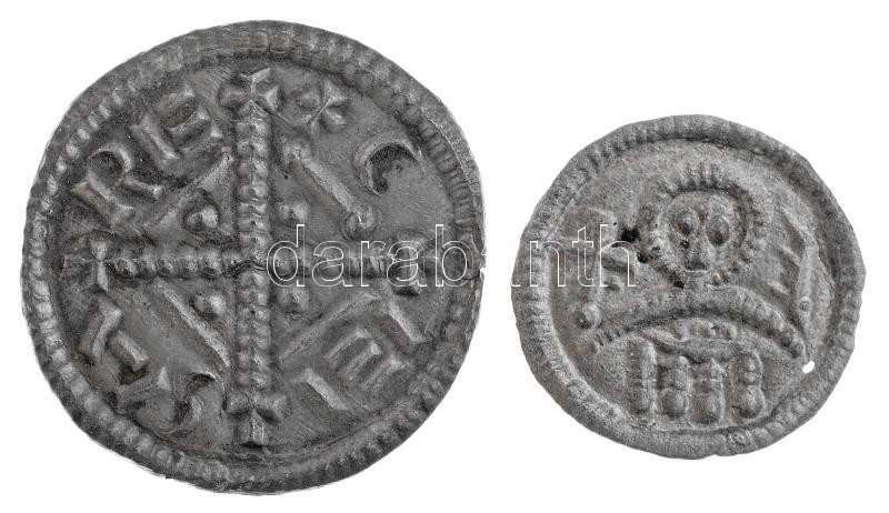 1141-1162. Denár Ag "II. Géza" (2xklf) (0,39g, 0,08g) T:1,1- patina / Hungary 1141-1162. Denar Ag "Géza II" (2xdiff) (0,39g, 0,08g) C:UNC,AU patina Huszár: 55., 136. Unger I.: 54., 55.