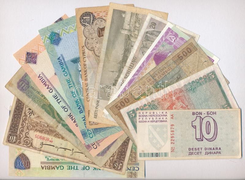 12 db-os vegyes, külföldi bankjegytétel, közte Pakisztán, Gambia, Ausztria, Ciprus T:I-III- 11pcs mixed, foreign banknote lot, within Pakistan, Gambia, Austria, Cyprus C:UNC-VG