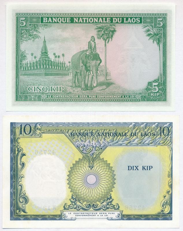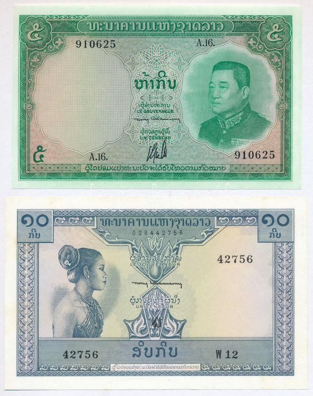 Laos 1962-1976. 5 Kip + 10 Kip C:UNC,AU