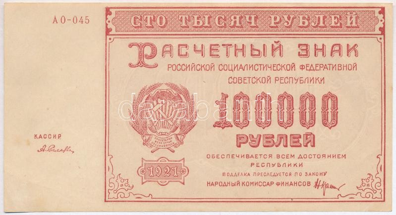 Szovjetunió / Orosz Szocialista Szövetségi Szovjet Köztársaság 1921. 100.000R T:II