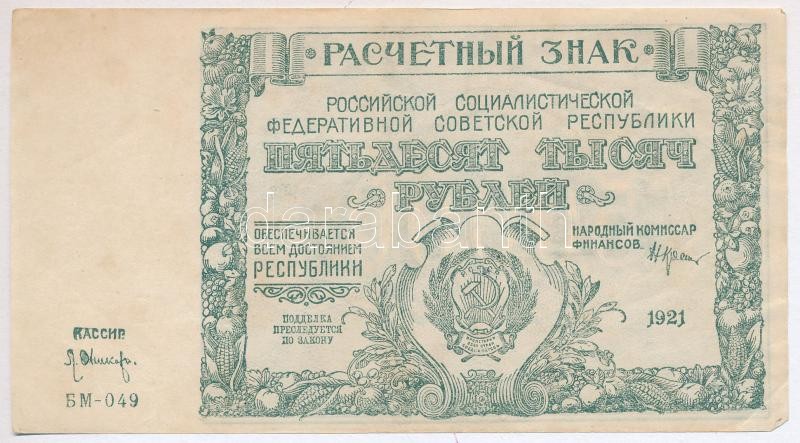 Szovjetunió / Orosz Szocialista Szövetségi Szovjet Köztársaság 1921. 50.000R T:II,II-