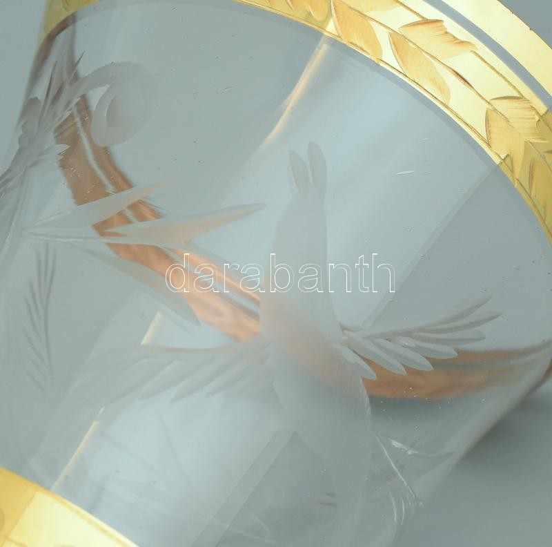 Beschreibung: 2db csiszolt díszpohár, aranyozott, üveg, kopott, jelzés nélkül, m: 11.5cm
