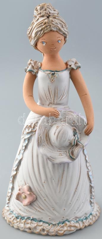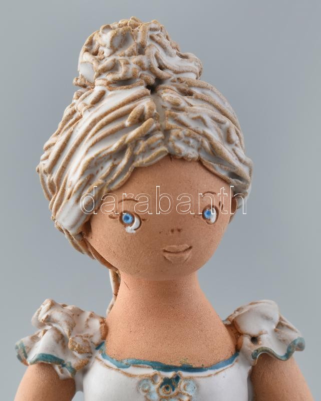 Beschreibung: Győrbíró Enikő (1932-1999): Hölgy kalappal, színes kerámia, hibátlan, jelzett, m: 22,5cm.