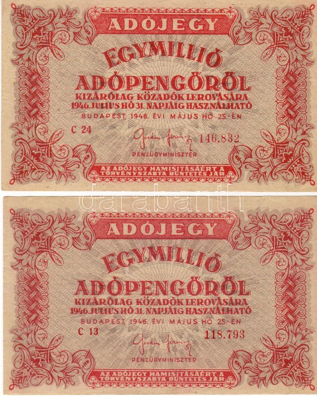 1946. 1000.000Adóp. (2x) 6 jegyű sorszámmal erősen elcsúszott (le és f... https://www.darabanth.com/de/41-Fernauktion/41.0/Numismatik/~153/1946-1000000Adop-2x-6-jegyu-sorszammal-erosen-elcsuszott-le-es-fel-szamozassal-vagC3~II79282