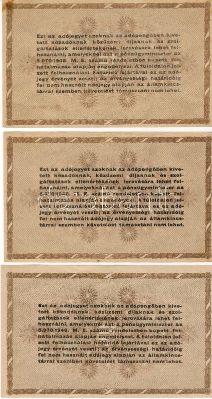 Beschreibung: 1946. 10.000Adópengő (3x) azonos erős lemezhiba (2x), ill. sorszám első száma felcsúszva T:II