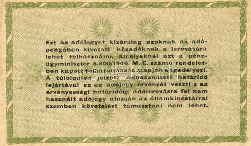 Beschreibung: 1946. 50.000Adópengő sorszám 1.számjegye jelentősen felfelé csúszva! T:II/III+