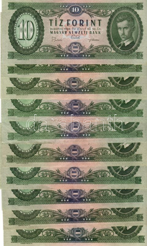 1969. 10Ft (10x) T:II+ Csak egyszer hajtva! https://www.darabanth.com/de/41-Fernauktion/41.0/Numismatik/~153/1969-10Ft-10x-TIIplus-Csak-egyszer-hajtva~II79279
