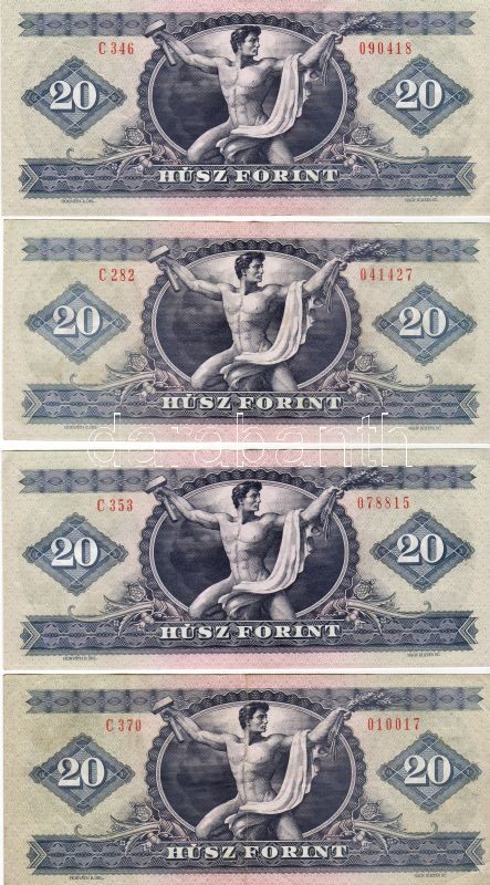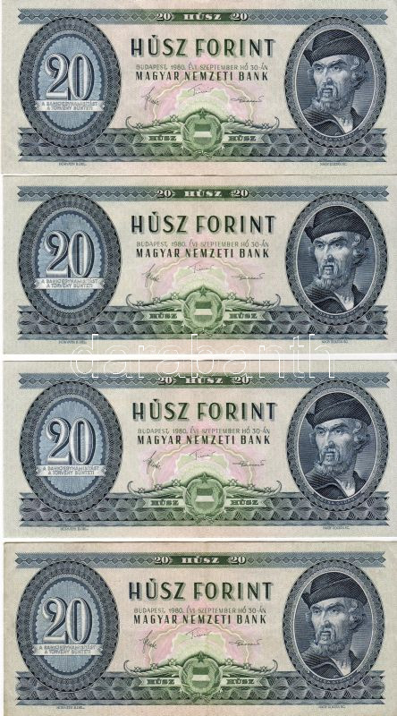 Beschreibung: 1980. 20Ft (4x) T:II+ Csak egyszer hajtva!