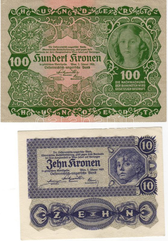 Ausztria 1922. 10K + 100K T:I https://www.darabanth.com/de/41-Fernauktion/41.0/Numismatik/~153/Ausztria-1922-10K-plus-100K-TI~II79227