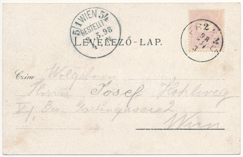 Beschreibung: 1898 (Vorläufer) Fraknó, Forchtenstein; Schloss Frochtenau / Kastély / castle. Samuel Schön Art Nouveau, floral, litho (EK)