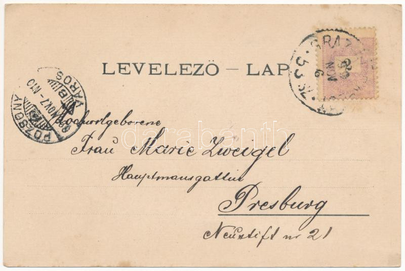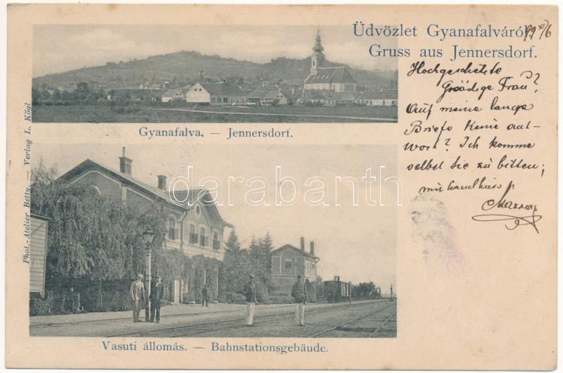 Beschreibung: 1899 (Vorläufer) Gyanafalva, Jennersdorf; vasútállomás. Phot. Atelier Betty, Verlag L. Kögl / Bahnstationsgebäude / railway station (EK)