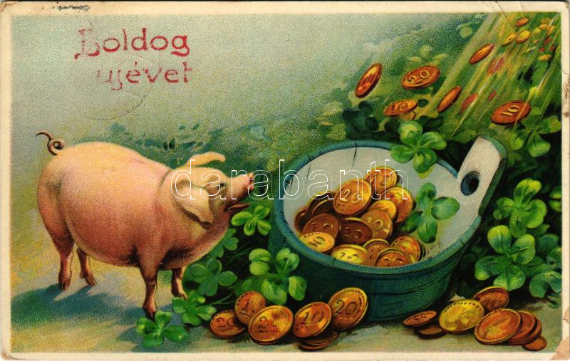1913 Boldog új évet! Malac / New Year greeting, pig. litho (EB) https://www.darabanth.com/de/41-Gross-Auktion/41.1/Ansichtskarten/GruC39Fkarten-Feste~16997/1913-Boldog-uj-evet-Malac-New-Year-greeting-pig-litho-EB~II3008603