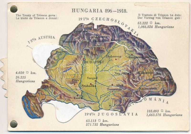 Hungaria 896-1918 - mechanikus térképes irredenta lap az elszakított területekkel - tokban / Map of Hungary, Irredenta mechanical postcard. Published by the Hungarian Women's National Association. Fecit: Emich