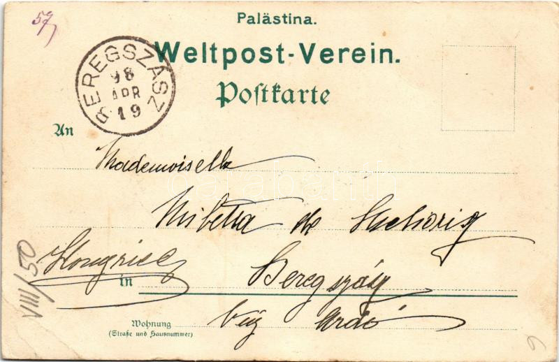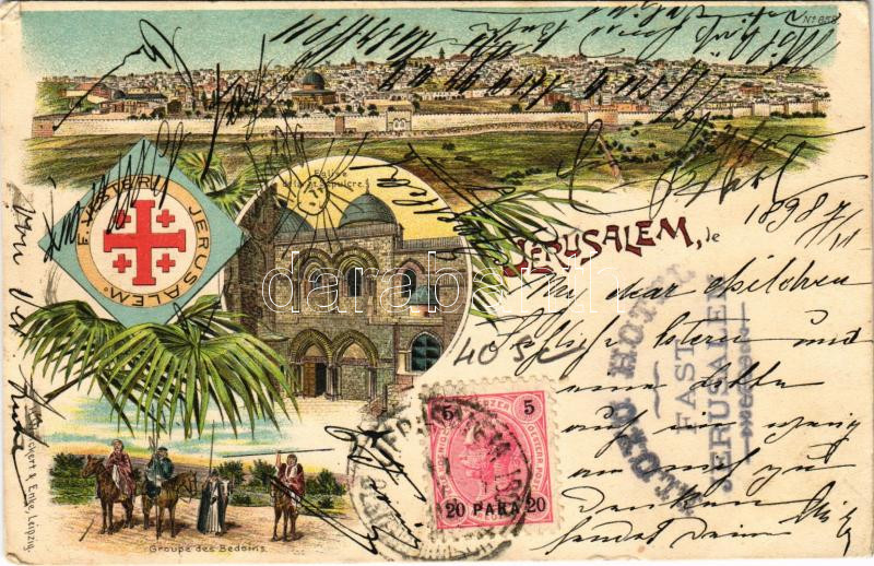 1898 (Vorläufer) Jerusalem, Église de ls St. Sepulcre, Groupe des Bedoins. H. Weickert & Enke / church, Bedouin folklore. Art Nouveau, floral, litho, TCV card (EB)