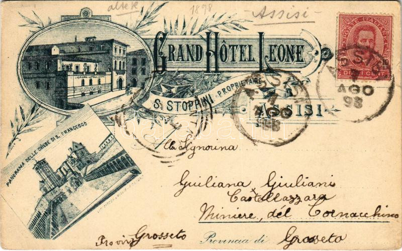 1898 (Vorläufer) Assisi, S. Stoppini's Grand Hotel Leone, Panoram... https://www.darabanth.com/de/41-Gross-Auktion/41.1/Ansichtskarten/Italien~17042/1898-Vorlaufer-Assisi-S-Stoppinis-Grand-Hotel-Leone-Panorama-delle-Chiese-di-S-Francesco-Ar~II3006694
