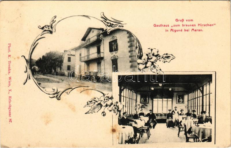 Lagundo, Algund (Merano, Südtirol); Gasthaus "zum braunen Hirsche... https://www.darabanth.com/de/41-Gross-Auktion/41.1/Ansichtskarten/Italien~17042/Lagundo-Algund-Merano-Sudtirol-Gasthaus-zum-braunen-Hirschen-Phot-K-Trenka-restaurant-~II3008789