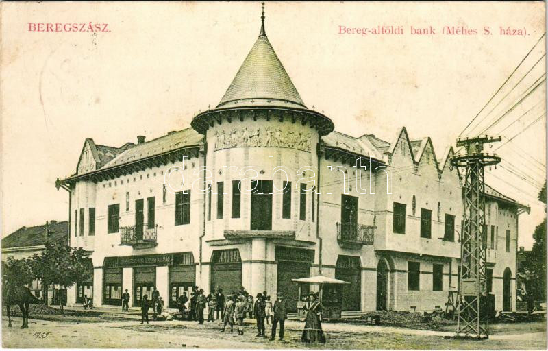 1912 Beregszász, Beregovo, Berehove; Bereg-alföldi bank (Méhes S. háza... https://www.darabanth.com/de/41-Gross-Auktion/41.1/Ansichtskarten/Karpatenukraine~16961/1912-Beregszasz-Beregovo-Berehove-Bereg-alfoldi-bank-Mehes-S-haza-epitkezes-WL-Bp~II2992302