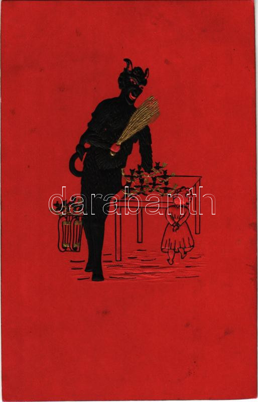 1902 Dombornyomott Krampusz üdvözlet / Embossed Krampus greeting https://www.darabanth.com/de/41-Gross-Auktion/41.1/Ansichtskarten/Krampus~16983/1902-Dombornyomott-Krampusz-udvozlet-Embossed-Krampus-greeting~II2979902