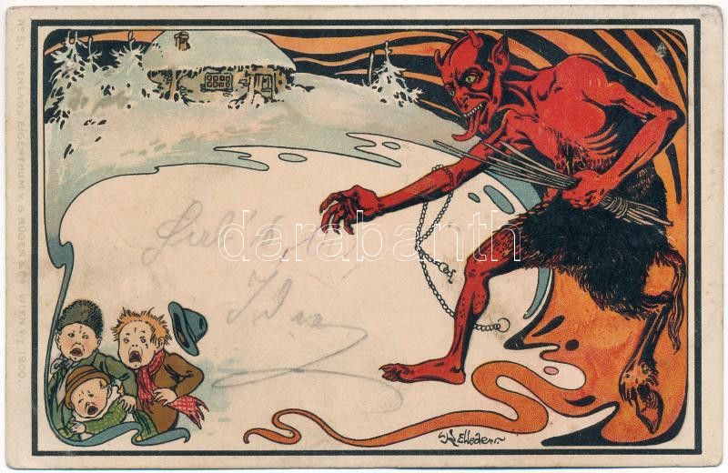 Krampusz / Krampus. G. Rüger & Co. Wien V/I. 1900. No. 51. Art Nou... https://www.darabanth.com/de/41-Gross-Auktion/41.1/Ansichtskarten/Krampus~16983/Krampusz-Krampus-G-Ruger-Co-Wien-VI-1900-No-51-Art-Nouveau-litho-s-Karl-Elleder-lyuka~II2991867