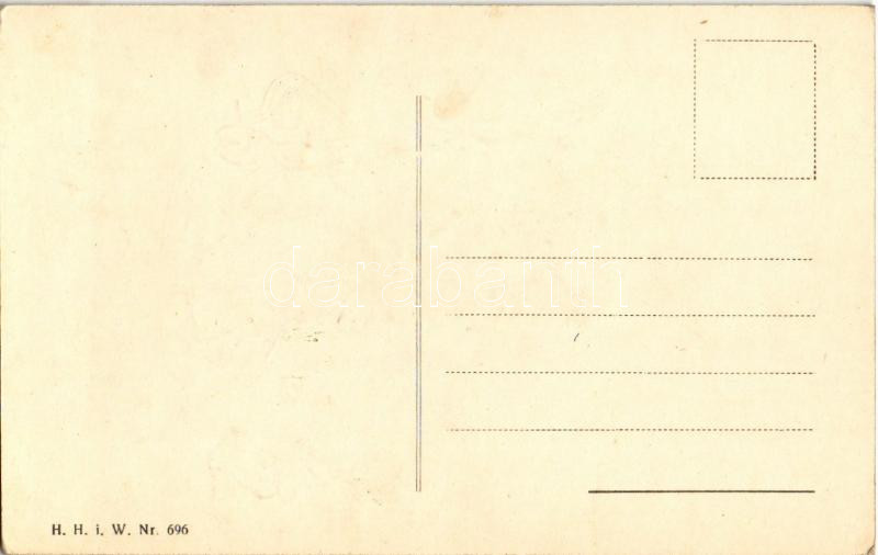 Beschreibung: Üdvözlet a Krampusztól / Krampus pours a bucket of children into hell. H.H.i.W. Nr. 696.