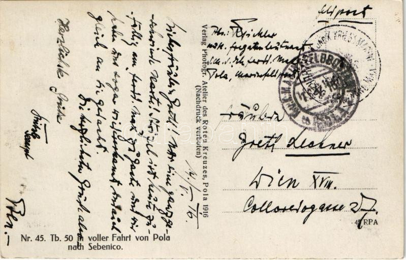 1916 K.u.K. Kriegsmarine SM Tb 50 Torpedoboot in voller Fahrt von Pola... https://www.darabanth.com/de/41-Gross-Auktion/41.1/Ansichtskarten/Kriegsschiffe~16973/1916-KuK-Kriegsmarine-SM-Tb-50-Torpedoboot-in-voller-Fahrt-von-Pola-nach-Sebenico~II3008955