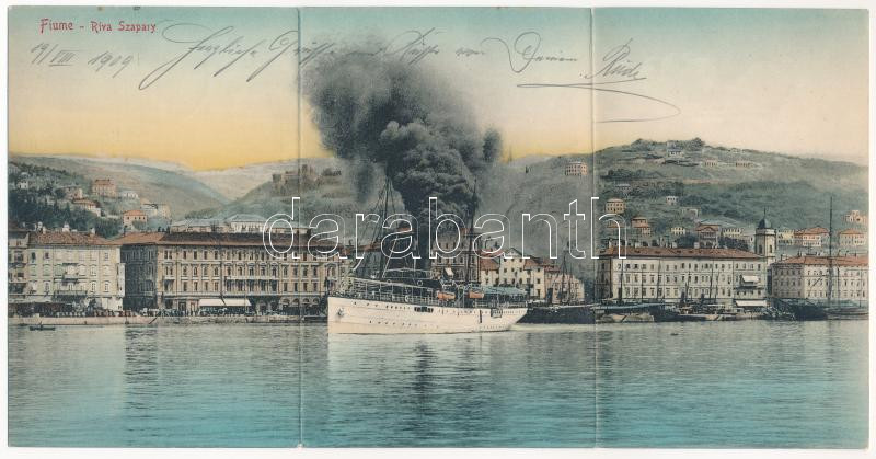1909 Fiume, Rijeka; Riva Szapáry - 3-részes kinyitható panorámalap / 3... https://www.darabanth.com/de/41-Gross-Auktion/41.1/Ansichtskarten/Kroatien~16962/1909-Fiume-Rijeka-Riva-Szapary-3-reszes-kinyithato-panoramalap-3-tiled-folding-panoramacar~II2985146