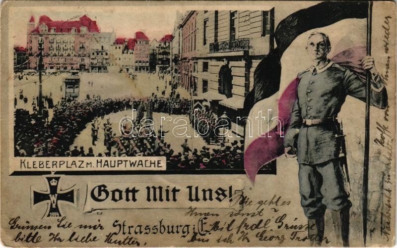 1915 Strasbourg, Strassburg; Kleberplatz m. Hauptwache. Gott mit Uns! ... https://www.darabanth.com/de/41-Gross-Auktion/41.1/Ansichtskarten/Militaria~16981/1915-Strasbourg-Strassburg-Kleberplatz-m-Hauptwache-Gott-mit-Uns-WWI-German-military-propagan~II3005626
