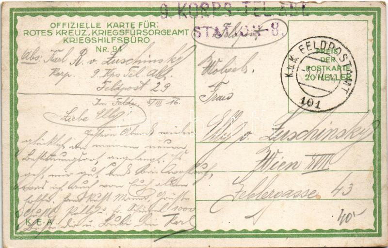 1916 Einzug unserer Truppen in Czernowitz. Offizielle Karte für Rotes Kreuz, Kreigsfürsorgeamt Kriegshilfsbüro Nr. 94. / WWI German and Austro-Hungarian K.u.K. military art postcard, entry of the Allies to Chernivtsi s: F. H. (EK)