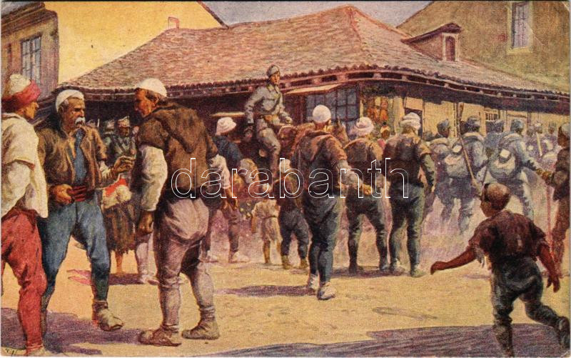 1917 Unsere Soldaten in Albanien. Offizielle Karte für Rotes Kreuz, Kreigsfürsorgeamt Kriegshilfsbüro Nr. 606. / WWI Austro-Hungarian K.u.K. military art postcard, soldiers in Albania (EK)
