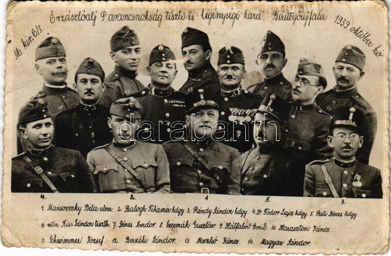1939 Berettyóújfalu, M. kir. 6/I. Őrzászlóalj Parancsnokság tiszti és legénységi kara névsorral / Hungarian military, soldiers and officers. photo (fl)