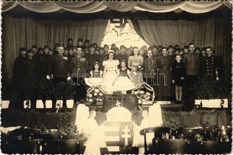 Beschreibung: 1942 Honvéd est, magyar címer / WWII Hungarian military, patriot night, coat of arms. photo (non PC)