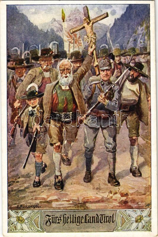 Fürs heilige Land Tirol! Offizielle Karte für Rotes Kreuz, Kriegsfürsorgeamt, Kriegshilfsbüro Nr. 153. / WWI Austro-Hungarian K.u.K. military art postcard, support fund, Tyrolean patriots s: E. Reckziegel