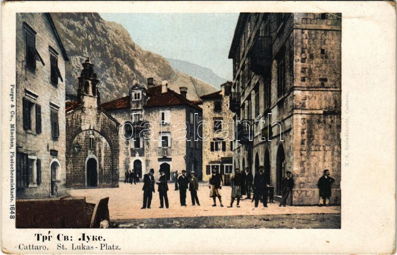 Kotor, Cattaro; St. Lukas Platz / square. N.S. Bjeladinovic (EK) https://www.darabanth.com/de/41-Gross-Auktion/41.1/Ansichtskarten/Montenegro~17037/Kotor-Cattaro-St-Lukas-Platz-square-NS-Bjeladinovic-EK~II2980600