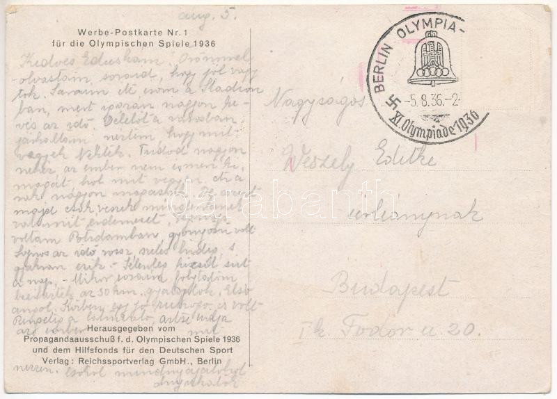 1936 Werbe-Postkarte Nr. 1. für die Olympischen Spiele / 1936. évi nyá... https://www.darabanth.com/de/41-Gross-Auktion/41.1/Ansichtskarten/Olympische-Spiele~16990/1936-Werbe-Postkarte-Nr-1-fur-die-Olympischen-Spiele-1936-evi-nyari-olimpiai-jatekok-193~II3008494