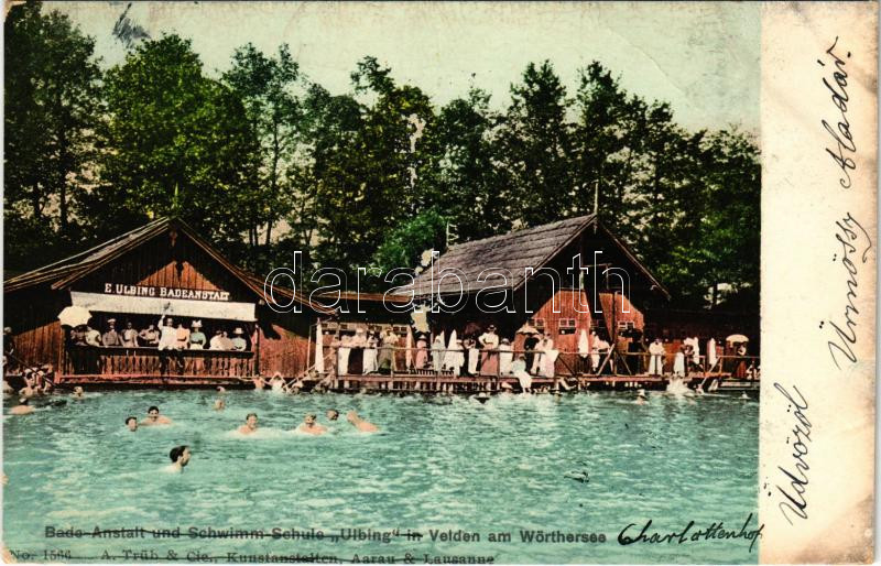 1906 Velden am Wörthersee, Bade Anstalt und Schwimm Schule Ulbing / sp... https://www.darabanth.com/de/41-Gross-Auktion/41.1/Ansichtskarten/Osterreich~17003/1906-Velden-am-Worthersee-Bade-Anstalt-und-Schwimm-Schule-Ulbing-spa-and-swimming-school-EB~II2980225