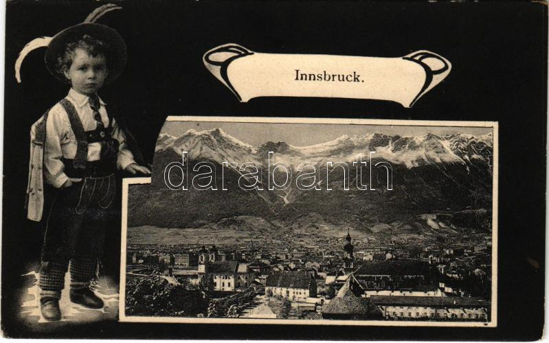 1908 Innsbruck. Art Nouveau montage with little boy in Tyrolean folk c... https://www.darabanth.com/de/41-Gross-Auktion/41.1/Ansichtskarten/Osterreich~17003/1908-Innsbruck-Art-Nouveau-montage-with-little-boy-in-Tyrolean-folk-costume~II2979806