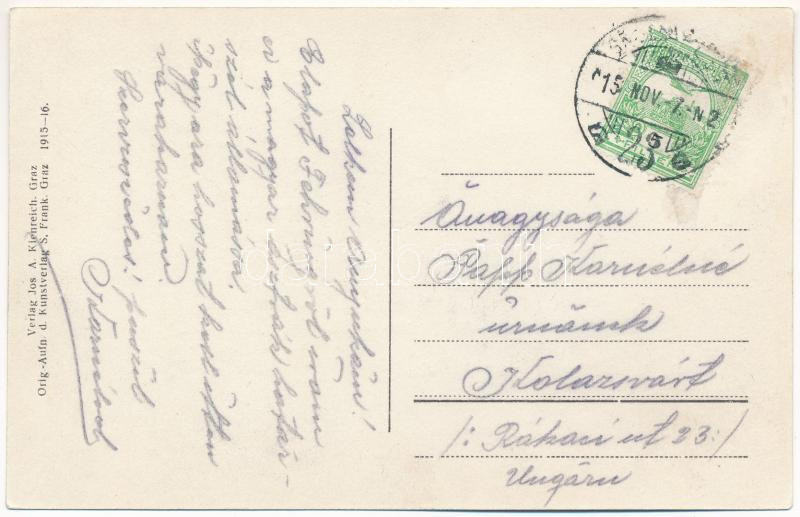 Beschreibung: 1915 Fehring, Bahnhof, Lokomotive. Verlag Jos. A. Kienreich / railway station, locomotive, Hungarian State Railways train / MÁV 275-ös sorozatú 628-as pályaszámú gőzmozdony a vasútállomáson, vonat