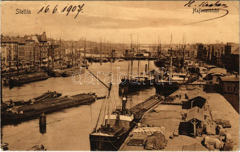 1907 Szczecin, Stettin; Hafenansicht / port, steamships (EB) https://www.darabanth.com/de/41-Gross-Auktion/41.1/Ansichtskarten/Polen~17030/1907-Szczecin-Stettin-Hafenansicht-port-steamships-EB~II2936109