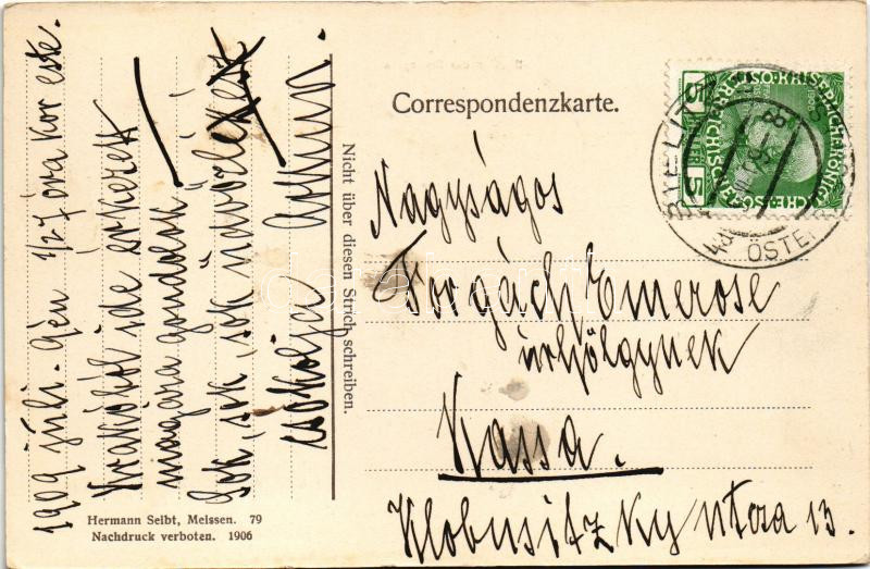 Beschreibung: 1909 Szyndzielnia, Kamitzer Platte; Gruss aus den Beskiden, Bistraythal, Touristenhaus / mountain tourist house, Bystra valley. Art Nouveau, floral