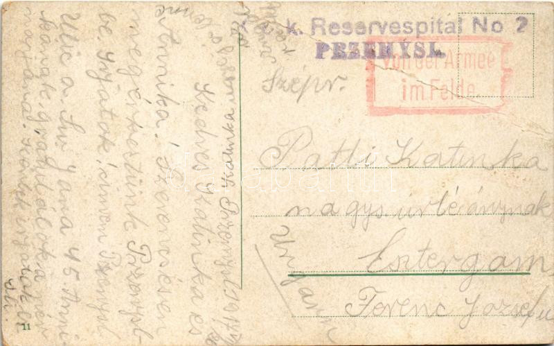 Przemysl, Dom robotniczy / Arbeiterheim / Worker's house. Art Nouveau Central Powers propaganda with flags and coats of arms + "K.u.k. Reservespital No. 2. Przemysl" (EB)
