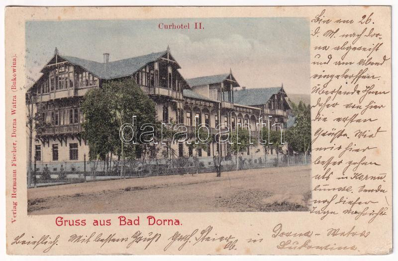 1903 Vatra Dornei, Dornavátra, Bad Dorna-Watra (Bukovina, Bukowina); C... https://www.darabanth.com/de/41-Gross-Auktion/41.1/Ansichtskarten/Rumanien~17046/1903-Vatra-Dornei-Dornavatra-Bad-Dorna-Watra-Bukovina-Bukowina-Curhotel-II-Hermann-Fischer-~II2993277