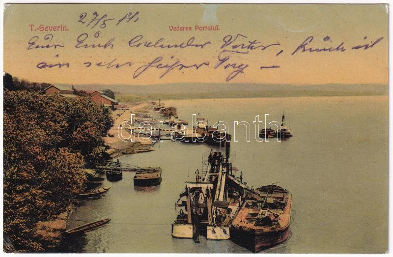 1911 Turnu Severin, Szörényvár; Vederea Portului / port, ships (EK) https://www.darabanth.com/de/41-Gross-Auktion/41.1/Ansichtskarten/Rumanien~17046/1911-Turnu-Severin-Szorenyvar-Vederea-Portului-port-ships-EK~II2909698