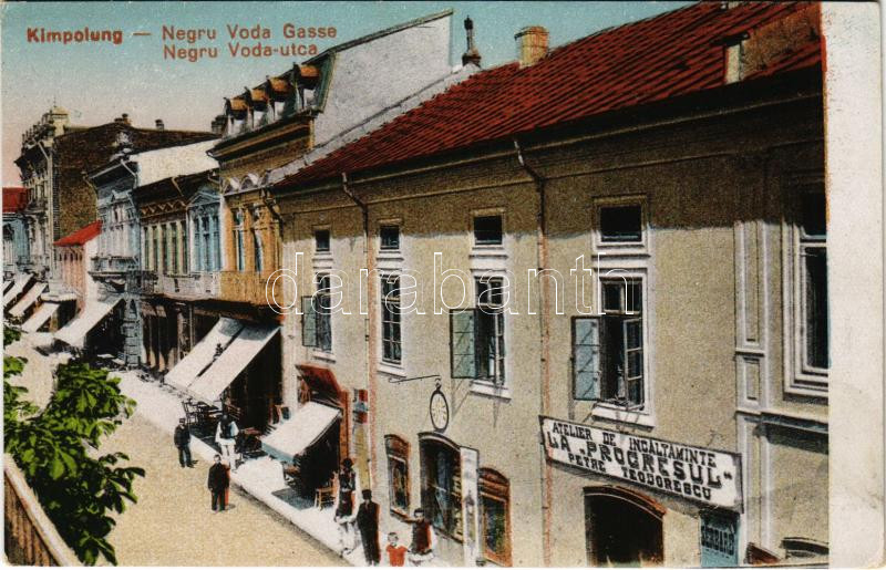 Campulung Muscel, Hosszúmező, Kimpolung, Cimpolung (Arges); Negru Voda... https://www.darabanth.com/de/41-Gross-Auktion/41.1/Ansichtskarten/Rumanien~17046/Campulung-Muscel-Hosszumezo-Kimpolung-Cimpolung-Arges-Negru-Voda-utca-cipesz-uzlet-Vasu~II2917048