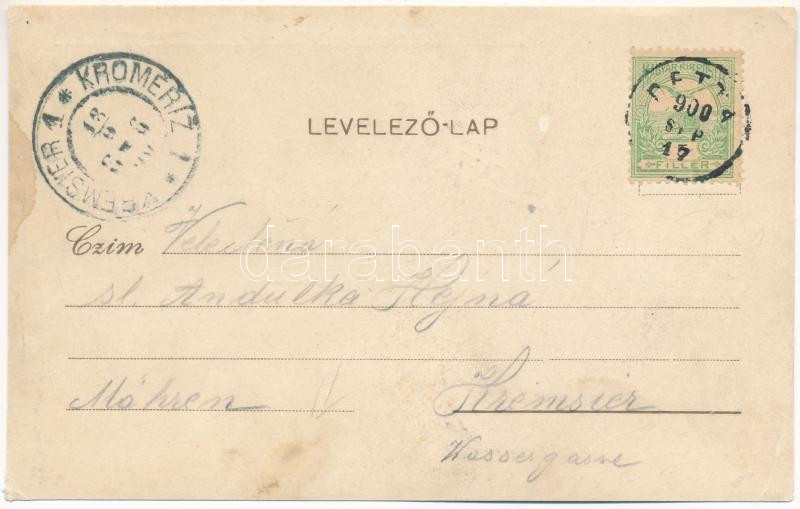 1900 Detta, Ghedu, Deta; Régi római katolikus templom, Fő út, Milleniumi csarnok, Kratzi sétány. Kapható Bonfert Károlynál / church, main street, kiosk. Art Nouveau, floral (r)