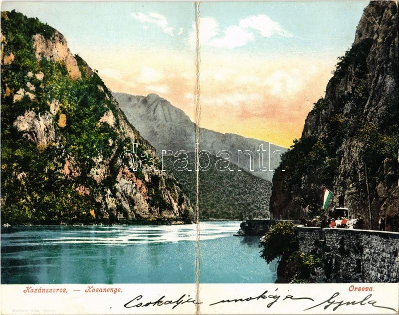 1908 Orsova, Kazánszoros, automobil magyar zászlóval. Kinyitható panor... https://www.darabanth.com/de/41-Gross-Auktion/41.1/Ansichtskarten/Siebenburgen~16959/1908-Orsova-Kazanszoros-automobil-magyar-zaszloval-Kinyithato-panoramalap-Kazaan-gorge-au~II2247065