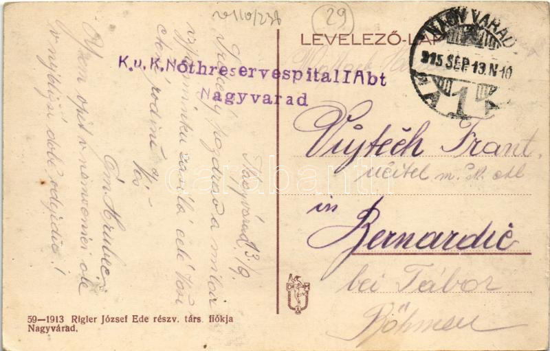 Beschreibung: 1915 Nagyvárad, Oradea; Rulikovszky út, Jenny Nándor üzlete, Bodega. Rigler József Ede 59-1913. / street, shops + "K.u.k Nóthreservespital I. Abt. Nagyvarad"